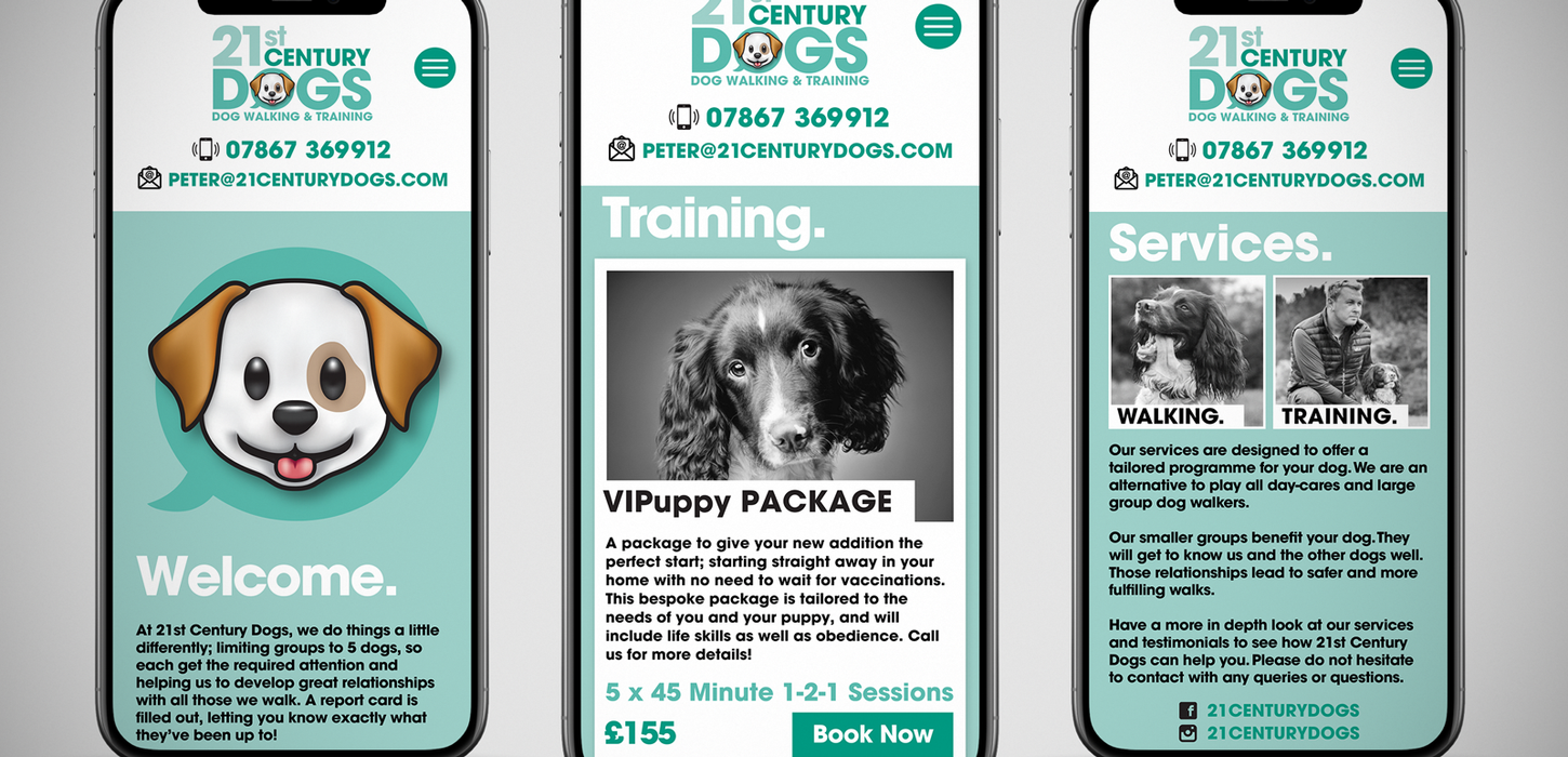 21st Century Dogs, a new startup offering walking and training services, required branding across multiple channels.